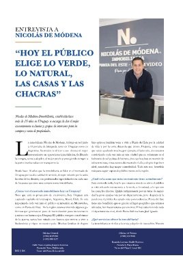 ¿Cómo ves el mercado inmobiliario hoy en Uruguay? las casas, las chacras. Quizás antiguamente por un tema de seguri- mos a disposición, nuestra prioridad es el cliente y lo acompañamos da 100% en construcción. Para diferenciarla de lo que es la marca