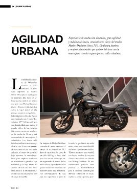 al saber que la moto responde- cromada de acero resalta en el suave y excelente maniobrabili- una Harley de mayor cilindra- instrumentación que ofrece la in-
