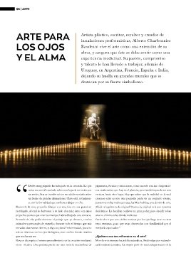 un lienzo de grandes dimensiones. Claro está, actualmen- creemos estar es solo una pequeña parte de un conjunto eterno, Creo fervientemente que el arte debe trascender los planos cotidia-