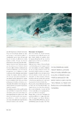 cultura maldiva y un pueblo hospitalario, se llama One & Only Reethi Rah, está todas las comodidades surf, con olas de entre 1 y 2,5 metros, so- cestrales. Queda embarcarse en una pes-