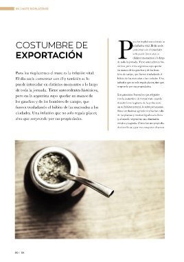 infusión (yerba mate + agua) en cuencos de calidad y el cuidado de la materia pri- (mate con bombilla, mate cocido y, en tiem-