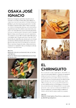 valor agregado de la pesca fresca local. Bajo el concepto de man- Ignacio ubicado a metros del mar por donde pasan más de