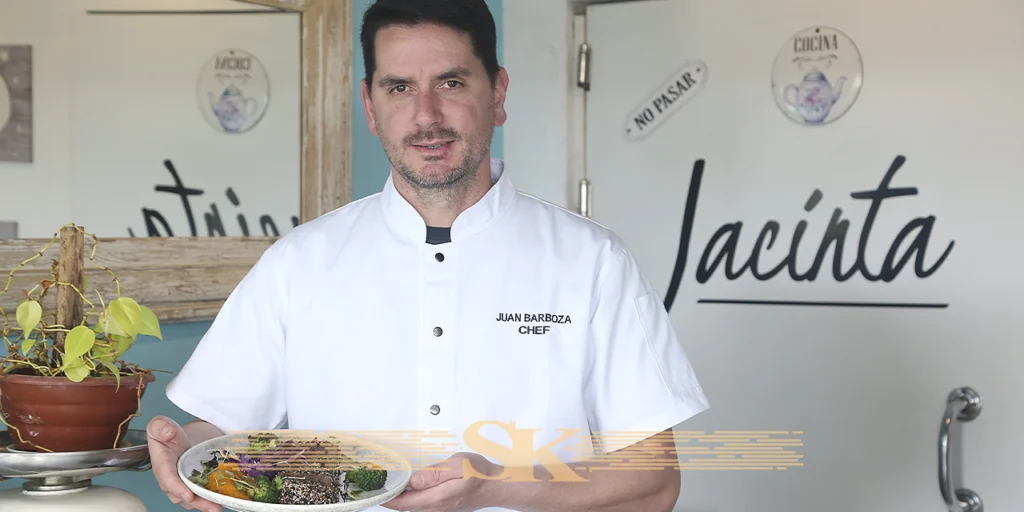 El chef Juan Pablo Barboza, formado en Uruguay, Francia y Brasil junto a Alex Atala, fusiona técnica refinada con productos locales. Su cocina celebra la biodiversidad y busca que, en Jacinta, cada detalle emocione al comensal.